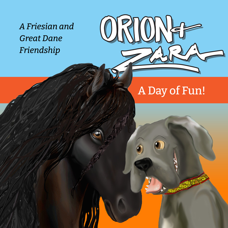 Orion is a Friesian horse that has a very special connection to Zara the Great Dane. It was clear when they had something special that others would enjoy them too! They are an example of, despite being so different, they can play and have fun!